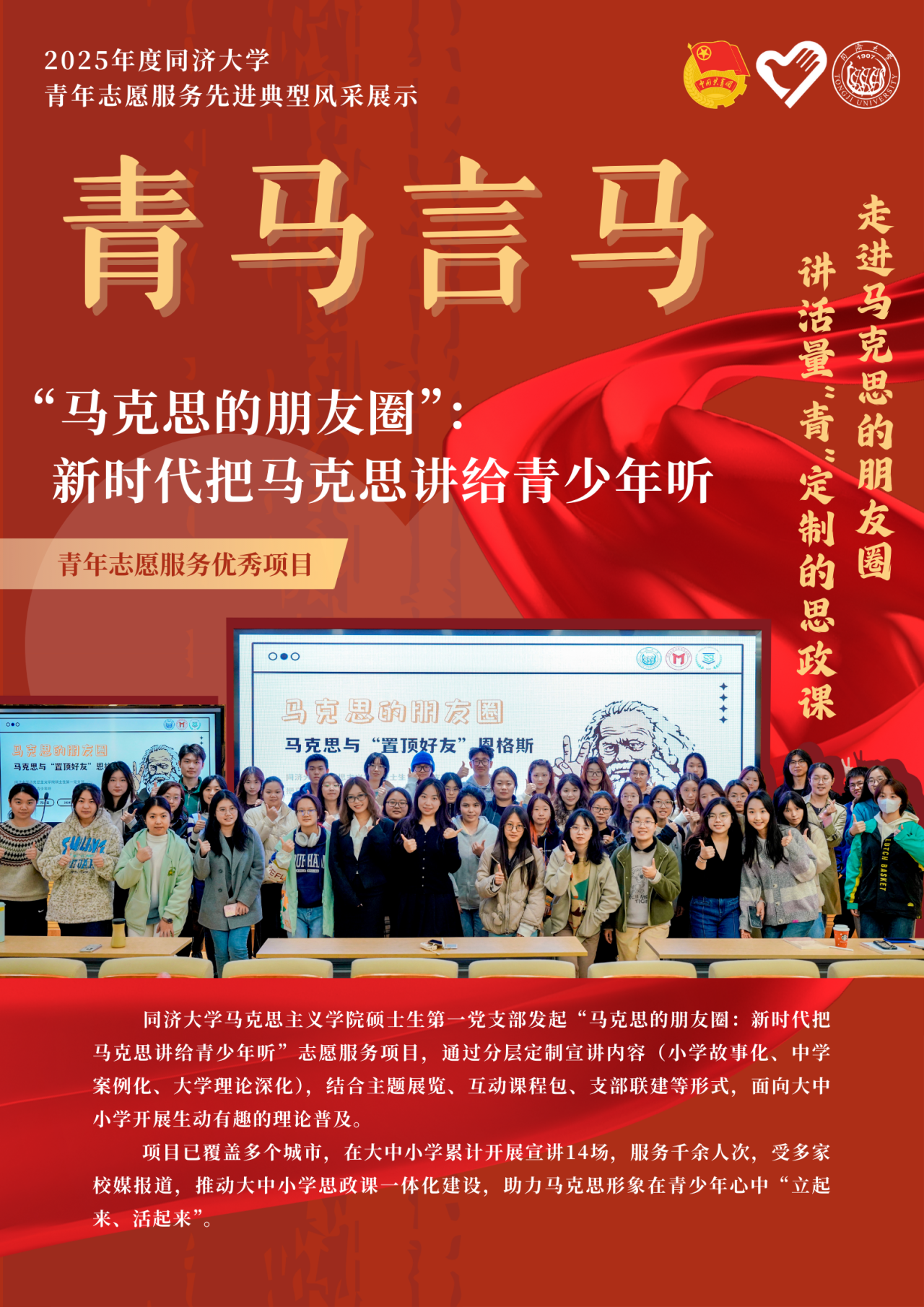我院“马克思的朋友圈:新时代把马克思讲给青少年听”项目荣获2025年度同济大学优秀青年志愿服务项目。