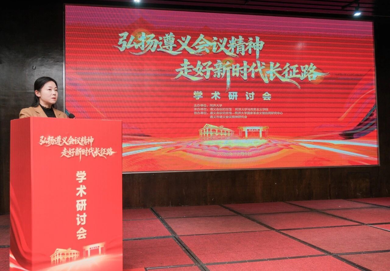 同济大学马克思主义学院院长、国家革命文物协同研究中心执行主任徐蓉在致辞中指出,此次学术研讨会既是对历史的深刻回顾,更是面向未来的思想求索,同济大学马克思主义学院、国家革命文物协同研究中心将深刻领会遵义会议精神的理论内涵与思想伟力,深入探索以遵义会议精神破解时代难题的实践路径,让遵义会议精神真正走进青年学子的内心。