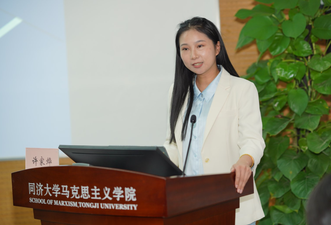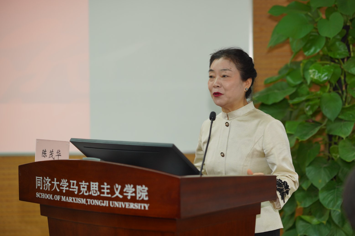 上海市虹口区曲阳第三小学郑青、上海市虹口实验学校吴佳美、上海财经大学附属北郊高级中学沈尉钦、上海科技大学思想政治理论课教研部教授陈茂华、上海济光职业技术学院马克思主义学院讲师张贝贝和同济大学马克思主义学院助理教授许家烨分别作为教师代表发言。
